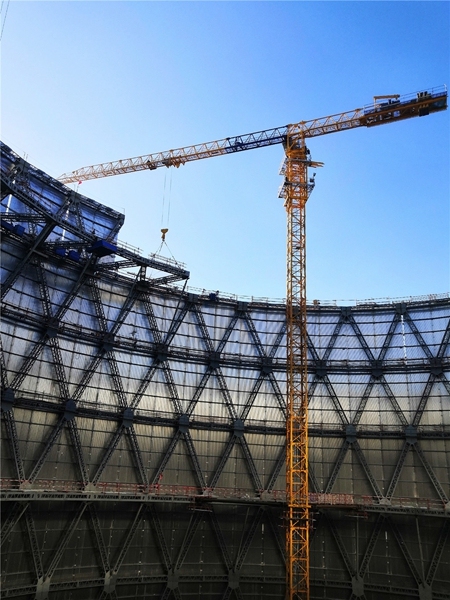 目前,這座大型鋼結(jié)構(gòu)間冷塔即將結(jié)構(gòu)封頂,北京龐源的這兩臺塔機也將隨即轉(zhuǎn)入同一電廠的第二座鋼結(jié)構(gòu)間冷塔的施工建設(shè)。下圖是施工中的精彩瞬間。