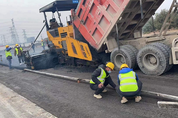 疫情就是命令,防控就是責任,疫情防控刻不容緩。接到任務(wù)后,機械化工程公司迅速向陜建機股份公司疫情防控指揮部進行報備,及時安排總調(diào)度吳雙和施工五部部長郭文學組織施工團隊,組織機械設(shè)備,落實攪拌站材料。各部門職工紛紛主動請纓參戰(zhàn),迅速集結(jié)30余名工程管理、現(xiàn)場施工、后場調(diào)度、設(shè)備調(diào)度等骨干力量,組成施工突擊隊。大家克服疫情特殊時期防控措施多、原材料和勞務(wù)人員短缺,設(shè)備運輸緊張等不利因素,第一時間奔赴施工現(xiàn)場。下午4點,兩臺ABG8620瀝青攤鋪機,一輛同步碎石封層車,一輛雙鋼輪壓路機,一輛膠輪壓路機等共計6臺機械設(shè)備進入工地現(xiàn)場。吳雙和郭文學還不忘對參與建設(shè)的每名管理人員、施工人員、機械操作人員和拌合站工作人員進場前的活動軌跡進行了摸底,逐一檢查每位現(xiàn)場工作人員的48小時核酸檢測結(jié)果,并進行登記,做好現(xiàn)場防疫工作,保障項目順利進行。